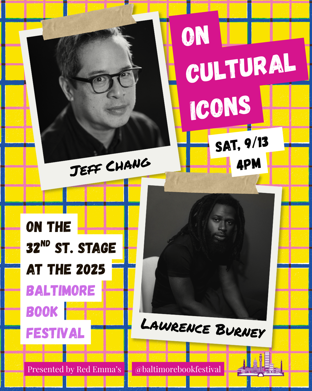 Join Red Emma’s Bookstore at the Baltimore Book Festival for a conversation between culture writers Jeff Chang and Lawrence Burney!